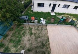 Au rez-de-chaussée : entrée, WC, séjour, cuisine ouverte aménagée et équipée (plaque et hotte), cellier avec pompe à chaleur, chambre.